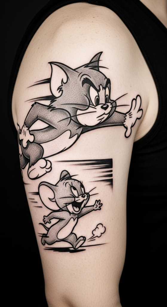 A Tom and Jerry tattoo isn’t just ink—it’s a vibe. Whether you go small, bold, black-and-white, or full sleeve, you’re carrying a piece of animated history with you.