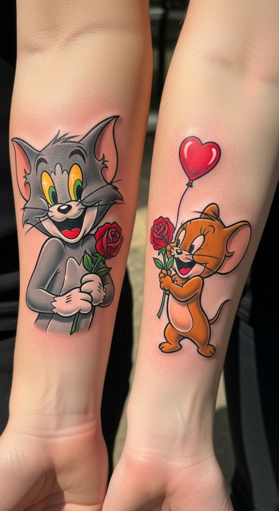 2. Tom and Jerry Couple Tattoo (Cute with a Dash of Chaos)