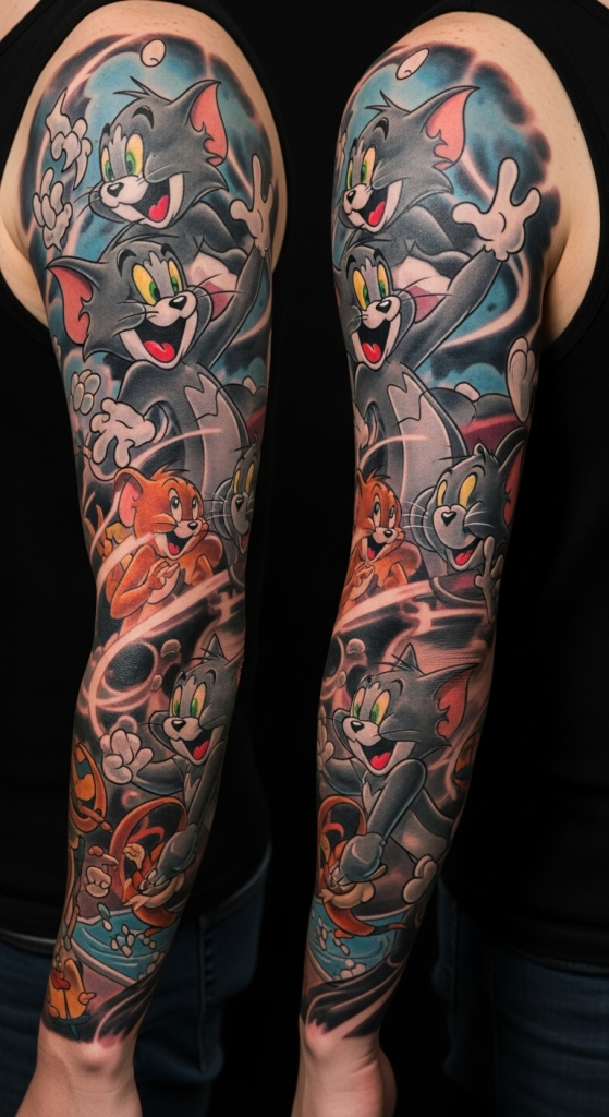 5. Tom and Jerry Sleeve Tattoo (Full Story, Full Impact)