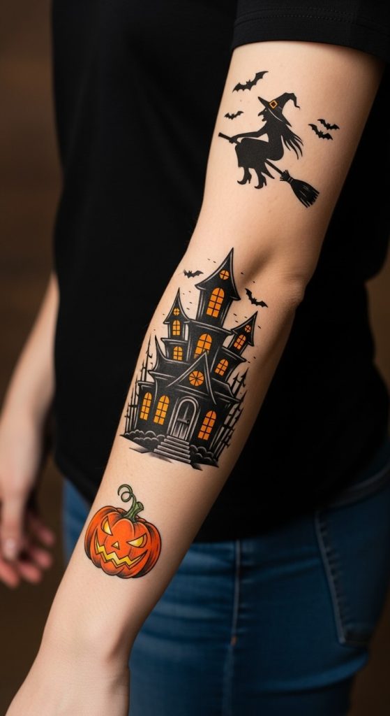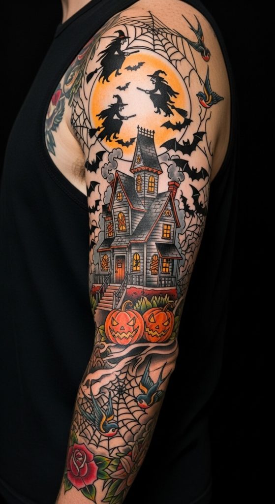 If you’re feeling adventurous, a Halloween tattoo sleeve can be an epic way to showcase multiple spooky elements in one design.