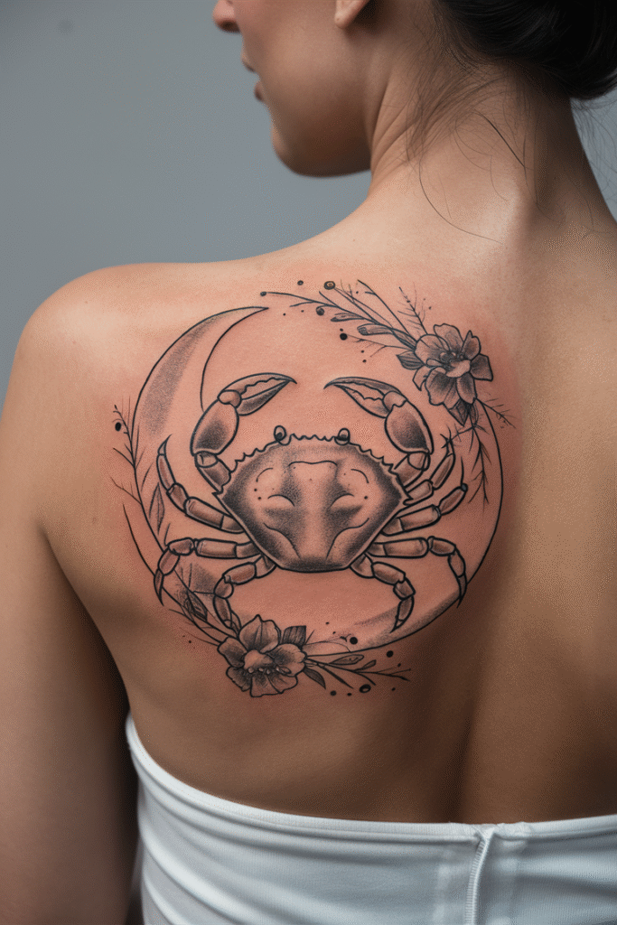 - The crab with floral accents: Combines nature and zodiac perfectly